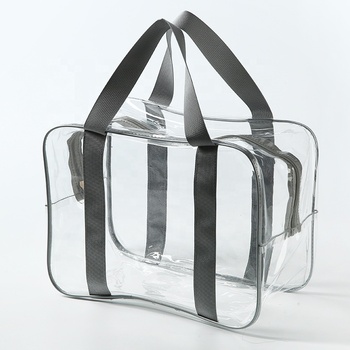 Toptan özel Logo PVC şeffaf plaj kadınlar yumuşak makyaj ajanda çantası seyahat kolu ile